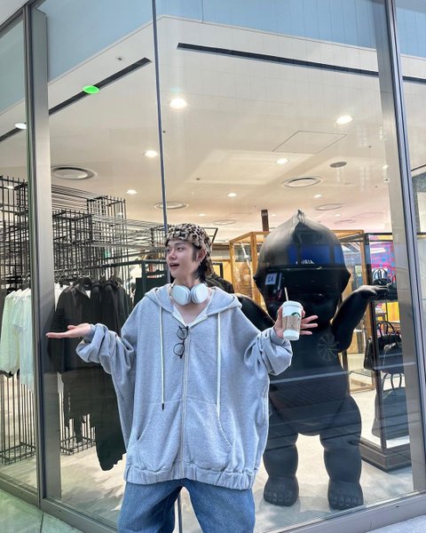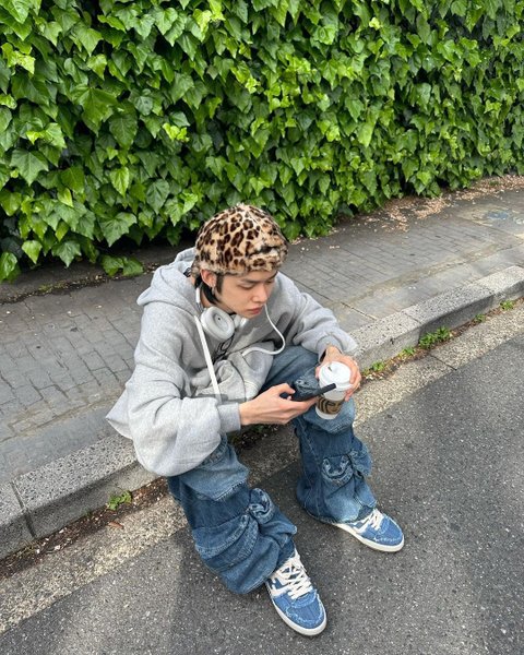 오늘은 꾸러기 스타일이네 저 모자 저 바지 대체 어떻게 소화해내는거야 귀염둥