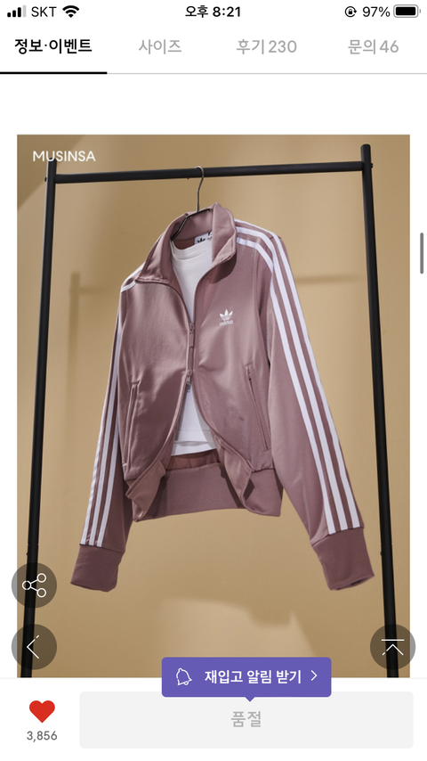 아디다스 파이어버드 져지 인디핑크 색.... 좀 붙는 핏인데