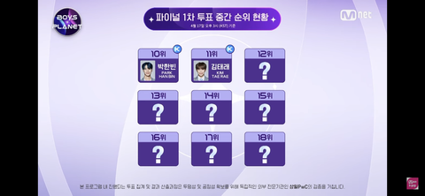 성한빈은 무조건1등으로데뷔고 박한빈 김태래는 무조건 데뷔조라는거네