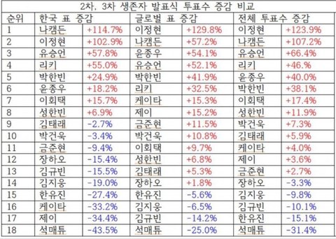 규빈이 투표수도 하락하고