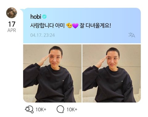 우린 이자리에서 잘 기다리고 있을테니 걱정하지 말고 건강하게 잘 다녀와 사랑해 정호석ㅠㅠ
