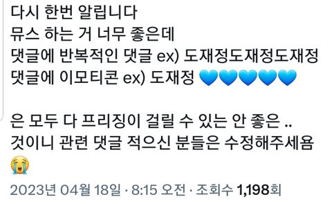 뮤비스밍 반복적인 댓글 ㄴㄴ래