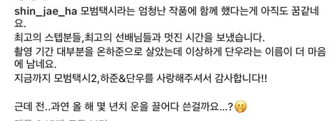 아! 덧붙이자면 신재하도 자신의 온하준 악행은 미화되지 않았으면 좋겠다고 밝힘