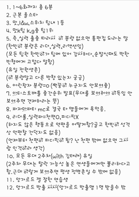 타연생들 특히 외국멤들 잘 챙기고 누구처럼 무지성 억지 서사 받으면서 분량 다 먹은 것도 아니고