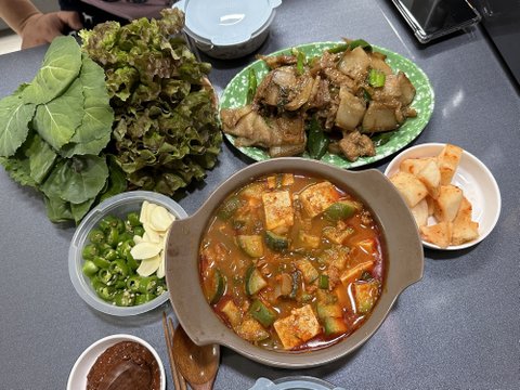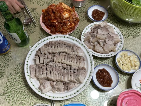 수육, 된장찌개.