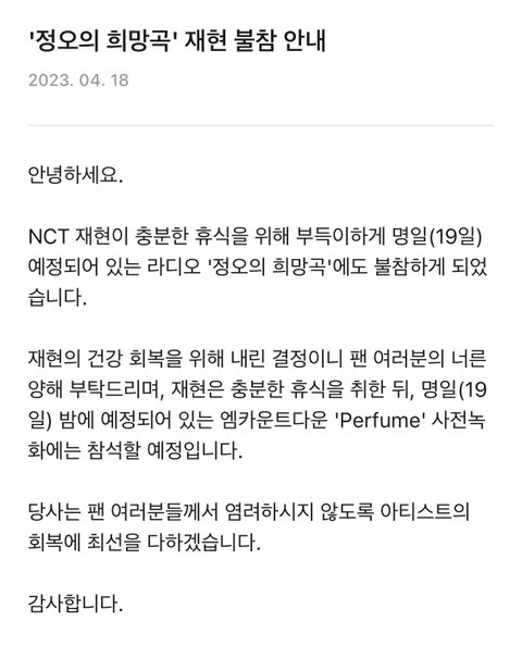 재현이 낼 라디오도 ㅠㅠ