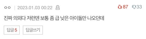근데 뉴진스 나온다 했을때도 글 자체는 욕하는 글이었어도 베플은 나올수도 있지 왜그러냐 이런 베플들이었음 까는 애들이 이상한거지 뭐