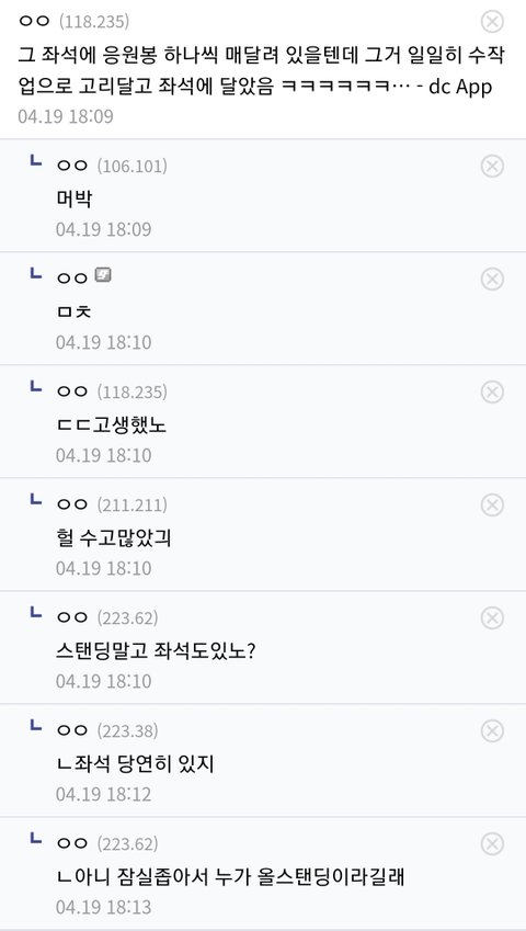 좌석에 응원봉 하나씩 고리에 매달았대 수작업으로 고생 ㅈㄴ했다네