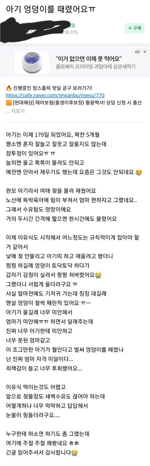 내용은 좀 쎄다만 솔직히 자식 때리는것도 범죄임.. 보육교사가 소리지르는것보다 엄마가 자식 때리는게 더 나쁜거 맞음.
