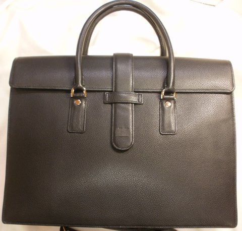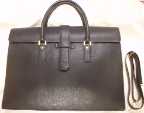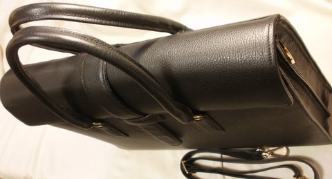 블랙 톤의 엠보싱 천연 가죽으로 제작한 핸드메이드 A3 도몀 가방 겸용 서류가방입니다.(마디샤 가죽공예-대구가죽공예)