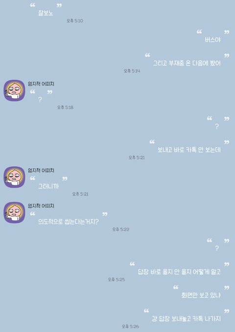 나는 isfp라 하고 싶은 말 그 자리에서 못하거든. 그래서 계속 속 썩히고 있었는데 내가 한 마디 했어. 말만 하면 대답이 어쩔티비로 와서 짜증이 나는 거야. 심지어 자기가 물어봐놓고 대답을 그렇게 해서 내가 뭐라 했거든? 그랬더니 사람이 이상해진 거 같아. 걔가 istj거든? 원래 그런가? 걔가 화날만한 행동을 해서 너 왜 그래 이런식으로 얘기했더니 '어 그냥 내가 나쁜 사람할게'이러고 내가 하는 말마다 반박하고 그래. 뭐 내가 이상한 사람일 수도 있는데 카톡 일부분을 공개할테니까 그거 보고 진짜 냉정하게 뭐라 해줬으면 좋겠어. 긴 글 읽어줘서 고맙고 댓글 부탁해.