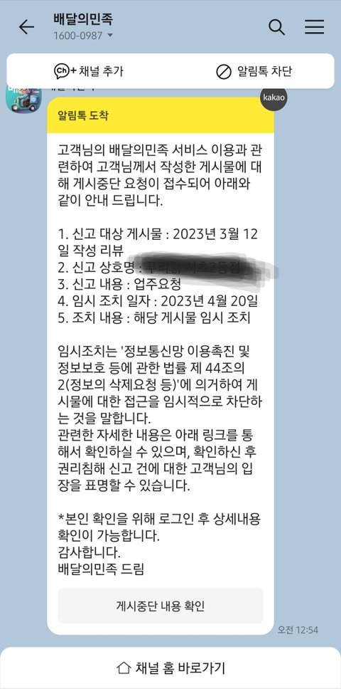 이거 업주가 요청하면 무조건 내릴 수 있는 거라네요?