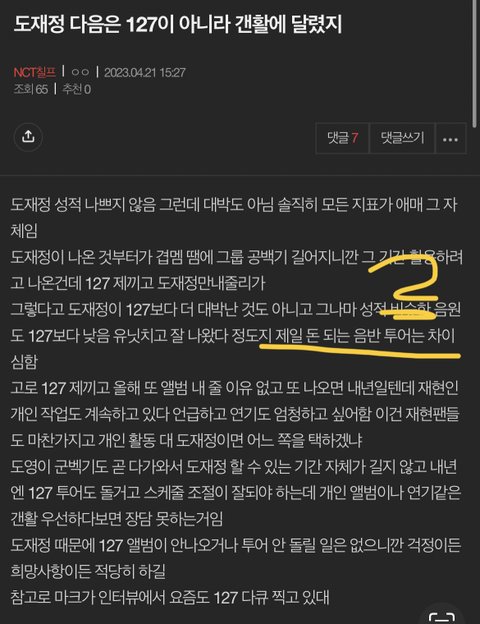 태용이는 ㅉㄲ말곤 인기없는데 그마저도