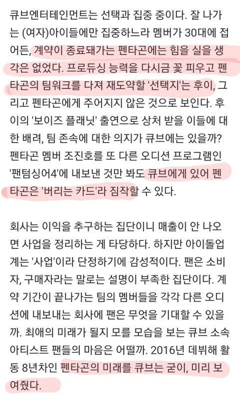 기사마저 펜타곤은 버리는 카드라는데......