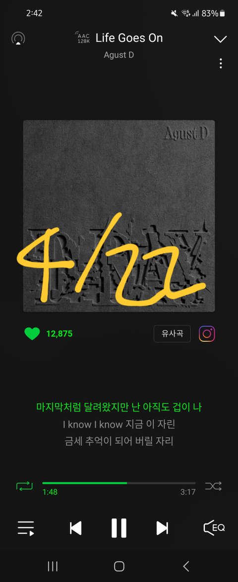 그런데 윤기버전 라고온 들으니까 얘네도 ㅜㅠ 팬들만큼 말어질까봐 불안하고 두렵고 이런 기분을 같이 느꼈다는 게 눈물남 ..ㅠㅠ