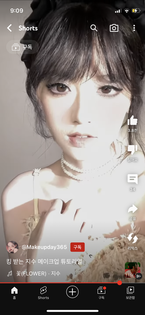 마땅히 가져올 사진 없어서 걍 쇼츠사진 지수꽃사진인데 내가뭔말하는지 알겠니 근데 나는 여쿨에다 눈자체가 아이라인 그리면 좀 이상하고 답답한눈 글고 똥머리하면 목짧은거 너무잘보임ㅅㅂ 글고 화장잘못해 그래도 성인되서 무조건해본다...
