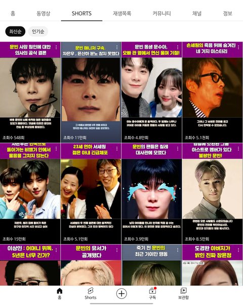 쇼츠 보다가 뜬 채널인데 문빈 외에도 각종 연예인 가짜뉴스들이 가득하더라 너무 역겨워,,,