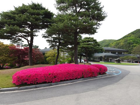 (사진3 설명) 블루헤런 골프클럽(클럽하우스) 전경 철쭉꽃 작품사진. <셔터 속도 1/250s, 초점 거리 23mm, 조리개 f 1.8, 촬영 감도 ISO 12, 삼성 S22 울트라 렌즈 사용, 촬영일자 2023.4.21 오후 15:58, 최대우 촬영, 주소: 경기도 여주시 대신면 고달사로 67>