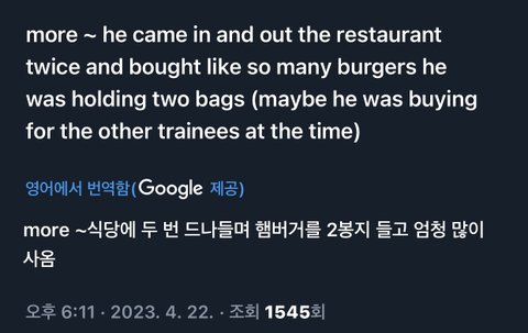 연습생들 나눠주려고 쉑쉑에서 햄버거 ㅈㄴ 많이 사서 두봉지 들고 나갔대