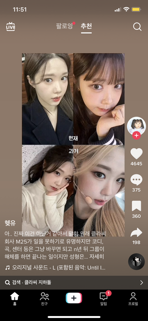 인상이 너무 바꼈다..ㅠㅜㅜ앞틤 하지말지