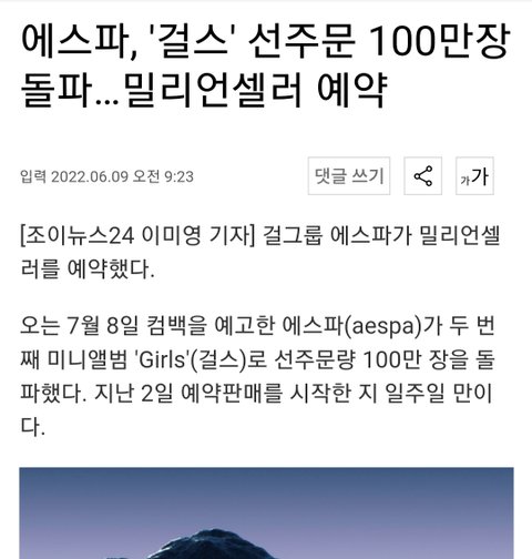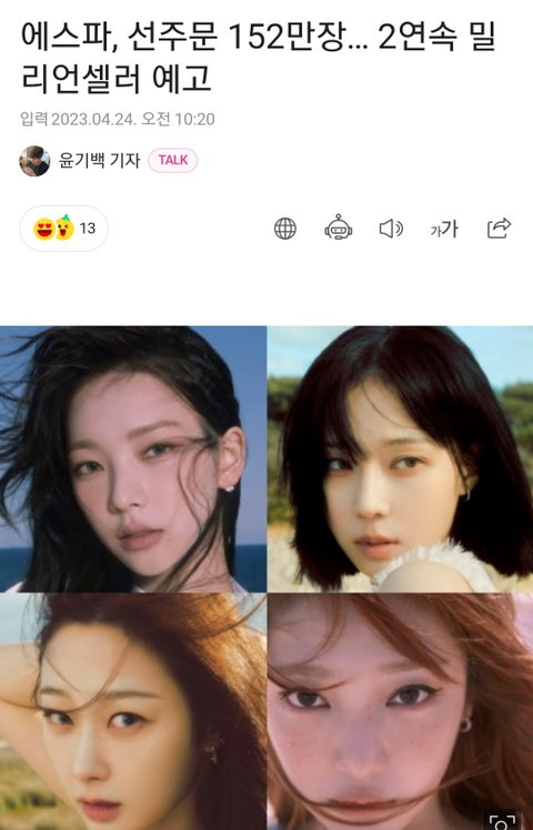 에스파 미니 3집 1주일 선주문 152만 돌파했당