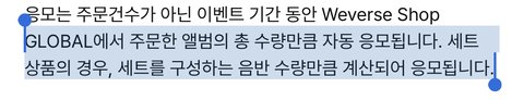 얼마정도일까? 한 100만원정도 사도 못 비비나ㅠ+근데 초동 때문에 이미 ㅈㄴ 많이 산 팬들도 많을텐데 그걸로는 응모 못한다니 ㅅㅂ+내가 좀 헷갈리게 쓴 거 같아서 수정함! 초동기간내에 구매하는 사람이 응모 대상이니까 초동에는 포함되지 않을까..?