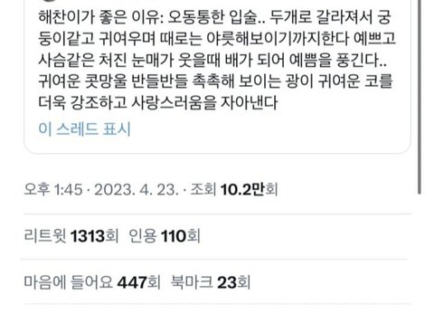 해찬 입술이 엉덩이처럼 두갈래로 나눠져서 귀엽다는데