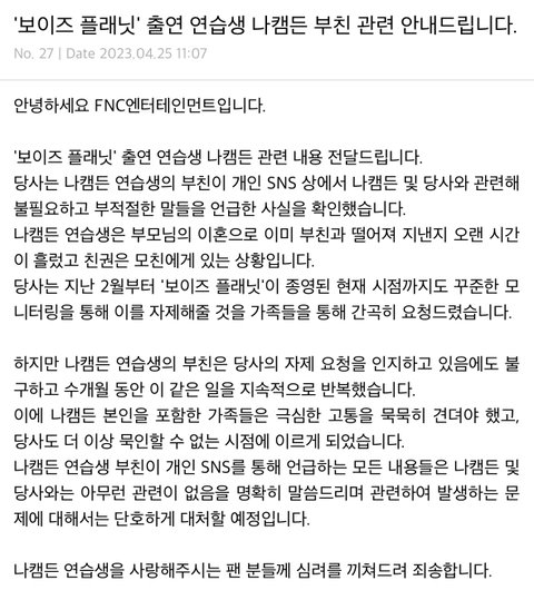 헐 나캠든 공지 뭐야?