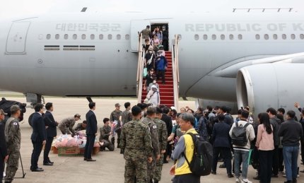 내전이 격화되고 있는 수단에서 무사 탈출한 한국 교민 28명이 25일 오후 4시 우리 공군 다목적 수송기 시그너스 KC-330편으로 성남 서울공항을 통해 귀국했다. 천신만고 끝에 전쟁터를 벗어난 교민들은 수단주재 한국대사관을 출발한지 사흘 만에 반가운 한국 땅을 다시 밟았다.