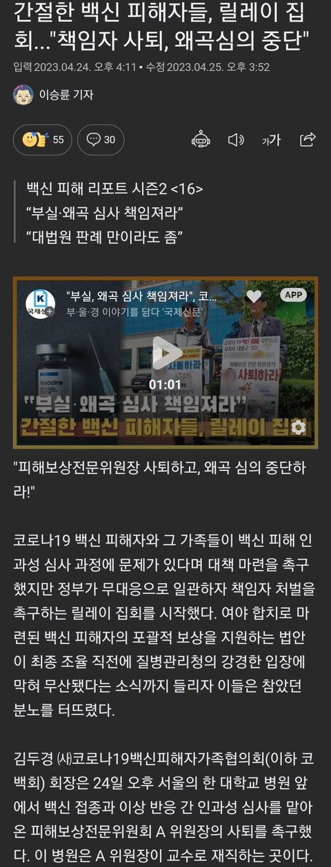 백신 부작용 피해자들에게도 관심과 지지를 부탁드립니다...!