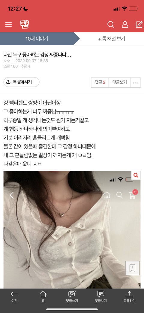 좋아하는 감정 ㅈ같아서 나같은애 없나 서치하다가 댓글 무심코 봤는디