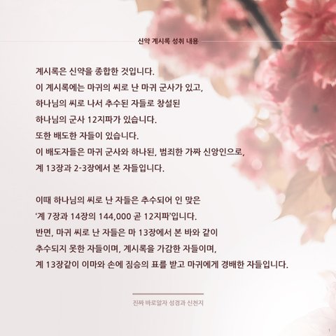 계시 성취 실상 증거 받고 천국과 구원에 이르시길 바랍니다.
