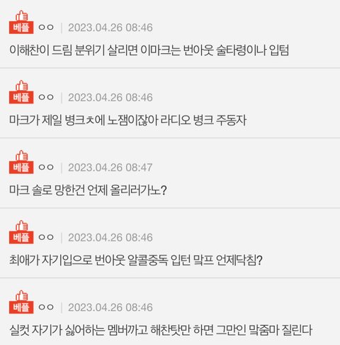해찬악개들은 지가 싫어하는 멤버 집착적으로 쳐패고 습관적으로 맠프머리채 잡으면서 책임전가