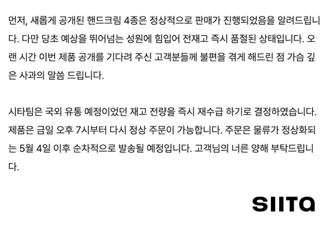 제품 공개하자마자 1초만에 전량 품-절