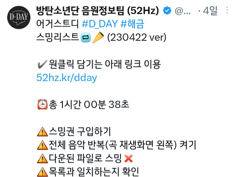 다들 오늘 꽂혀서 들은 디데이 뭐야?