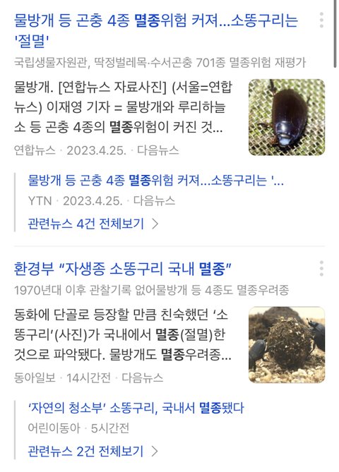 아....왜 국내만 멸종인가 했는데 댓 중에 사료먹는 소 똥은 소똥구리한테 적합하지않다는 댓 보니까 이해된다.... 목장에 풀어놓고 키우는 나라는 아직 생존해있겠네....