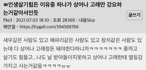 인생 살기 힘든 이유 중 하나가 상어나 고래만 강요해서인듯