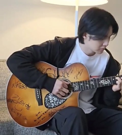 투어간다고 멤버들 싸인 기타에 적어온거 봐..
