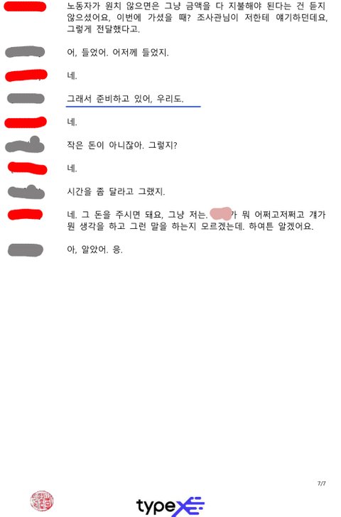 그후 협상 결렬로 노동부 조사가 진행되었고 사장이 노동부 첫 조사를 받고온 다음날