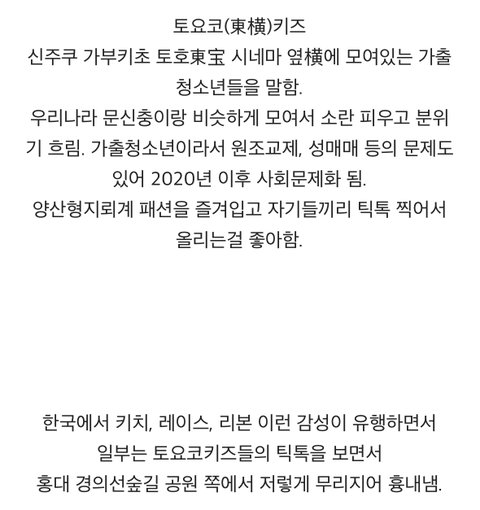 따라할게 없어서 일본 가출청소년따위를 따라하나... 진짜 수준낮다...