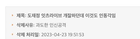 라이브 억까글 올라왔길래 잘한다고 했다고 정지시키는건 뭐임? 까글은 하나도 삭제안되어있던데