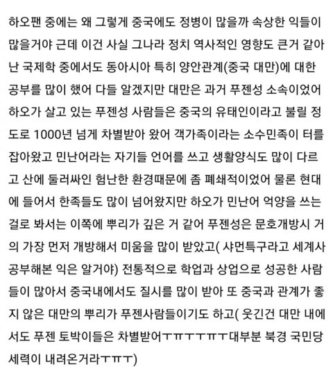 ㅁㅊ.. 그래서 백사자 그 븅신이 푸젠지역사람들을 혐오한다는거였구나ㅜㅜㅜㅜ 에휴 진짜 지역차별 너무한거아니냐