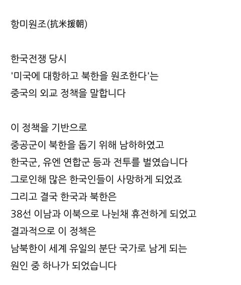 계속 항미원조 말하는 애들아