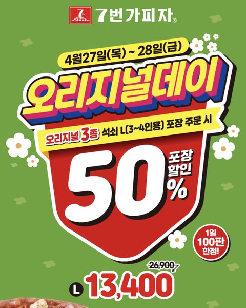 선착순 피자 50% 할인이래;;; 빨리 먹어