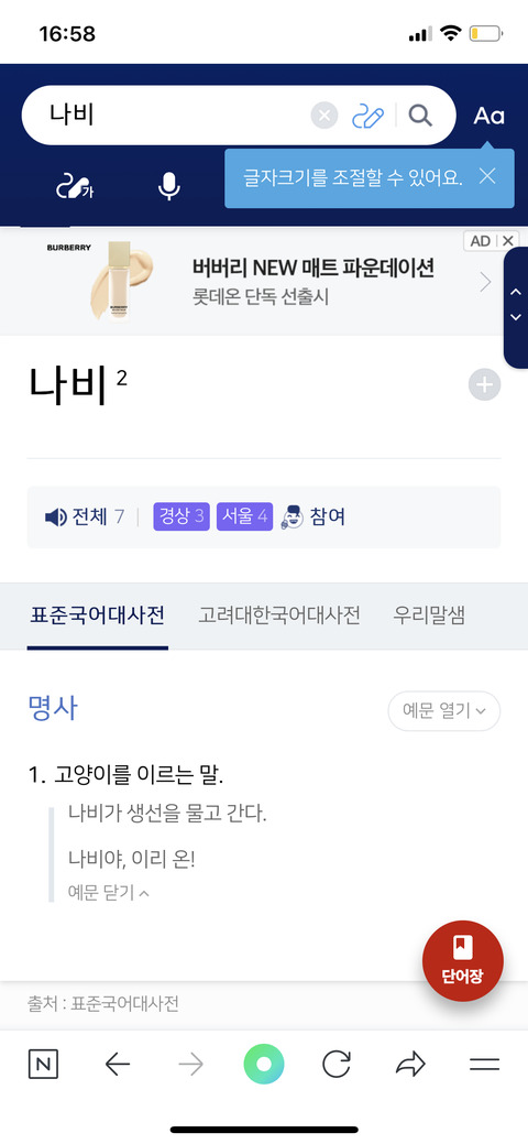 진짜 칭하는 단어가 나비야 진짜 몰랐다