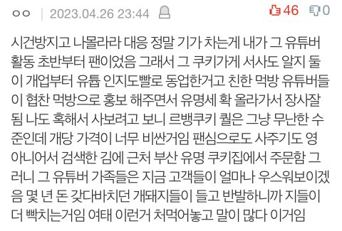 궁금해서 상황 물어보는 분 있길래 여따 적음----- 1. 해명에서는 범인범인╋경쟁업체라는 식으로 감성팔이로 밀어붙임. 근데 증거가 너무 허술함. 이에 대한 반박글이 더 구체적╋논리적이었음. 2. 폐기했다는데 너무 앞뒤 정황이 안맞음. 첨에는 사람들 이 정도의 반응은 아니었고 걍 해명해달라 -- 이거였는데, 사장님이 인스타에서 속시원한 해명!해준다면서 잠수탐. 걍 판 글 다 글삭해버리고 달리는 댓글 족족 다 삭제해버림. 그 와중에 점점 알바들의 증언 등등이 쏟아지고 계속 글삭당한 사람들까지 이제는 태도에 빡쳐서 난리난듯 (지금 삭제당한 글들에서, 구체적인 증거들╋알바들╋소비자들 증언들 다 있었음 그런거 다 삭제해버림 ㅋㅋㅋ인스타에도 좋은 말 써주는 사람들꺼만 남겨서...)