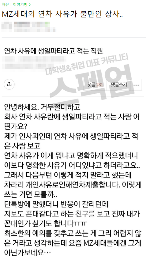 요즘도 개인 연차 쓰는데 사유 적는 곳이 있네...
