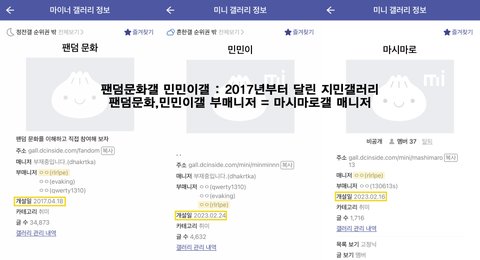 1. 팬덤문화갤, 민민이갤 = 지민 팬들 모인 파생갤이고 여기 부매니저가 마시마로라는 비공갤을 파서 인증 받아서 팬들을 모음