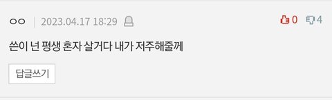 가는 곳마다 이런 댓글 하나씩 꼭 있음 진짜 지겨울 정도로.. 너무 많아서 지금 몇번째 본건지도 잘 기억 안남 저번에 내가 쓴 글에도 이렇게 댓 달렸던데 왜이러고 다니는거야 진짜ㅡㅡ;;