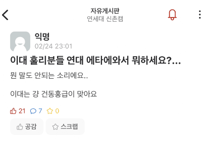 문과는 시립대에 쳐 따이더니 작년부터는 건대랑 겹치는 잡대가 뭔 ㅋㅋㅋ